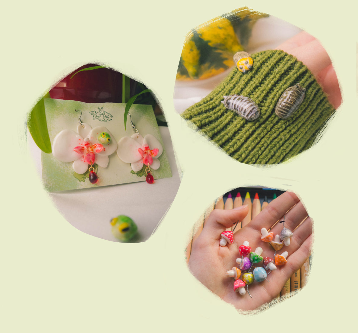 My sister Elisa is joining me on this website! Her craft ranges from beaded bracelets and hair clips to tiny earrings made from polymer clay, handpainted earrings and original artworks and cards~